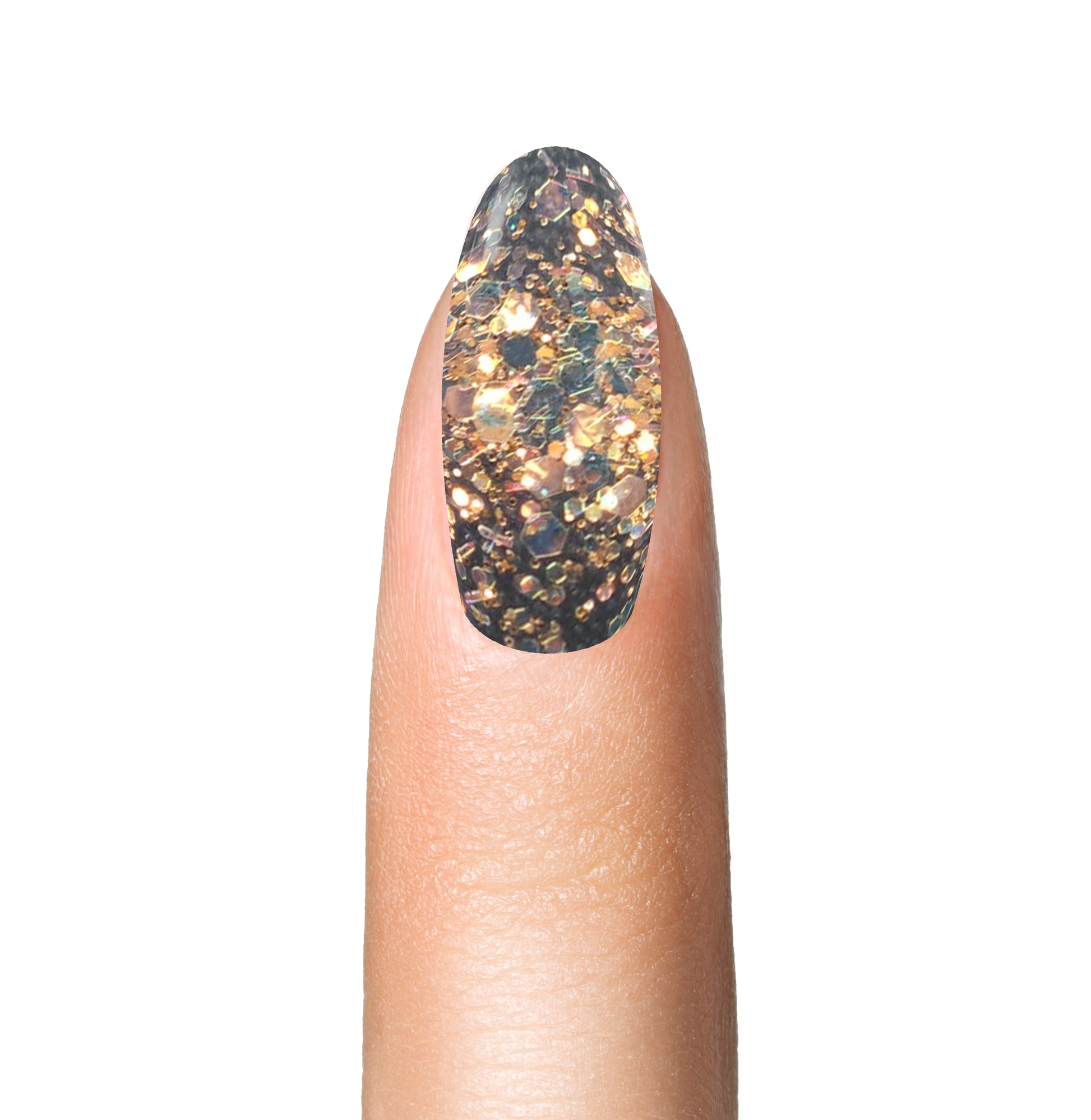 Apportez le luxe et l'éclat des étoiles à vos ongles. Ces pellicules sont remplies d'une multitude de paillettes holographiques et dorées de différentes tailles, créant un effet tridimensionnel sensationnel. Parfait pour les fêtes, les soirées chics ou simplement pour ajouter une touche de glamour à votre quotidien. C'est votre feu d'artifice personnel, au bout des doigts !